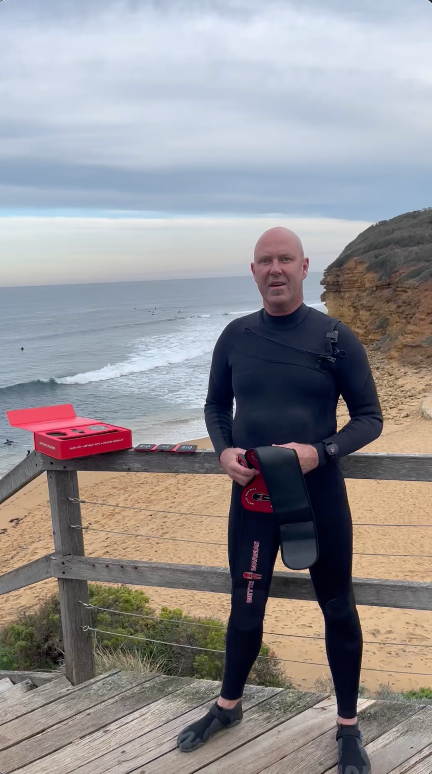 But while others struggled with the challenges of saltwater and waterproofing, Chris continued to innovate. His relentless drive to solve problems led to the creation of the world’s first and only completely wireless wetsuit heating system - Wettie Warmaz.